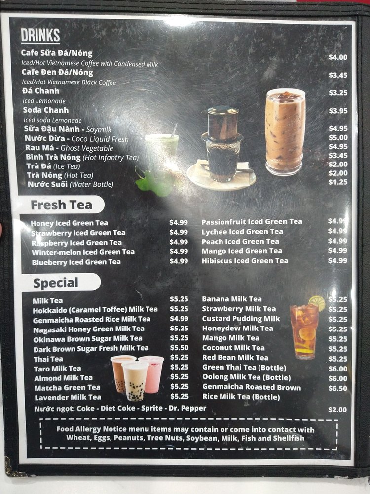 Introducing the menu at Pho and Boba, a Vietnamese restaurant known for its authentic and flavorful dishes. From appetizers like Tom Hoa Tien Rocket shrimp and Banh Xeo Vietnamese Crepe to a variety of Pho options such as Pho Dac Biet and Pho Tai, the menu offers a wide range of choices to satisfy any craving. Don't miss out on their Beef Stew selections like Hu Tieu Bo Kho TC or Banh Mi Bo Kho for a hearty meal. Customers rave about the generous portions, attentive service, and delicious flavors. Try their Vietnamese Iced Coffee or Hot Green Tea for a refreshing beverage to complement your meal. With a cozy and trendy atmosphere, Pho and Boba is a hidden gem in Glendale for those seeking authentic Vietnamese cuisine.