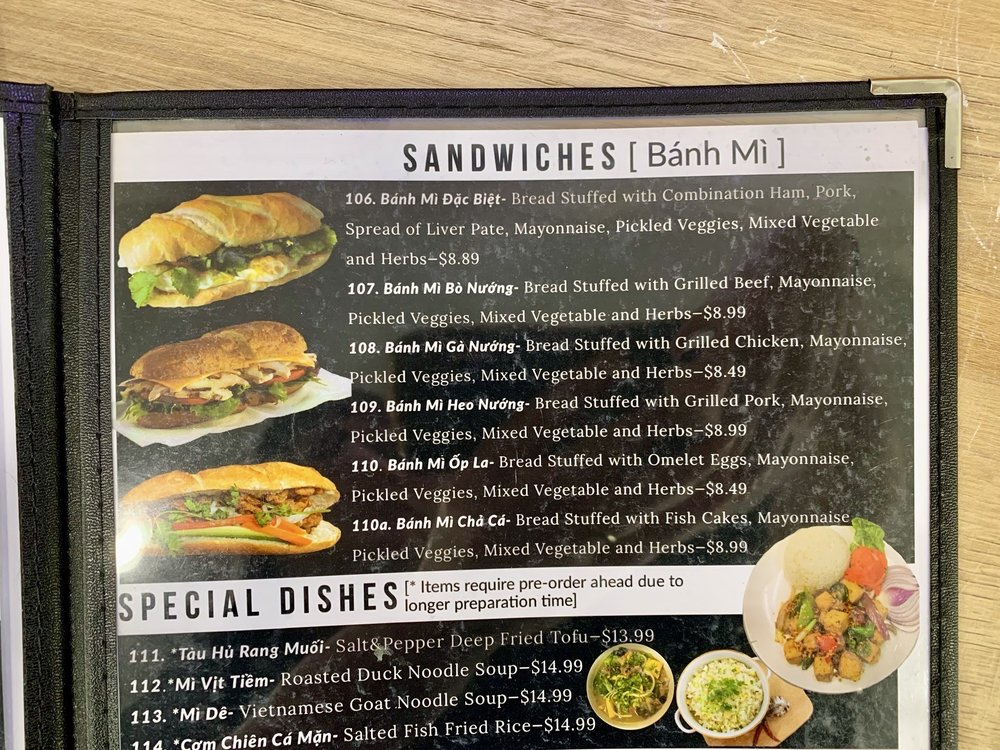 Bread Stuffed with Combination Ham, Pork, Spread of Liver Pate, Mayonnaise, Pickled Veggies, Mixed Vegetable and Herbs